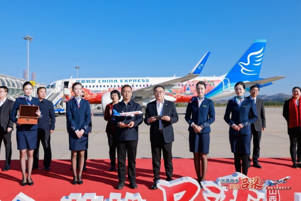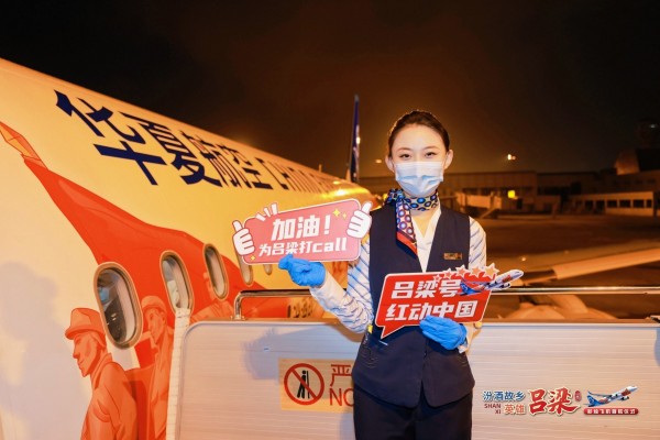 “汾酒故乡 英雄吕梁”号彩绘飞机的首飞,对吕梁城市品牌宣传是具有重要意义的一刻,意味着“汾酒故乡 英雄吕梁”城市品牌插上翅膀,飞向更广阔的天地。