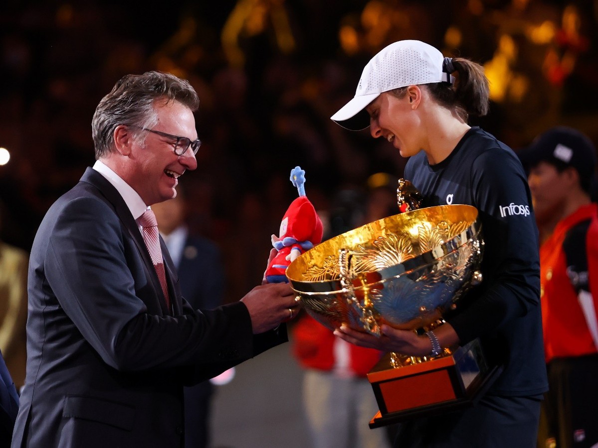 【2023年10月9日,北京】10月8日,随着斯瓦泰克直落两盘拿下胜利,2023中国网球公开赛(以下简称“中网”)的女子单打冠军奖杯尘埃落定。至此,为期13天的中网所有赛程均已完成,大赛圆满落下帷幕。颁奖典礼上,北京奔驰汽车有限公司(以下简称“北京奔驰”)总裁兼首席执行官柏睿凯为斯瓦泰克颁发本届中网吉祥物,2023年度中网赛事随之划上圆满句号。