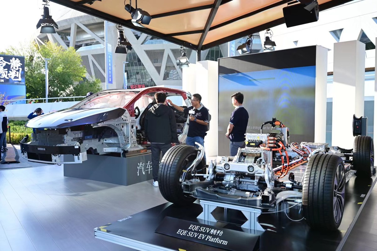 位于国家网球体育中心南侧的北京奔驰品牌中心,汇集了全新EQE SUV白车身以及全新EQE SUV、EQE、全新长轴距GLC SUV、GLB SUV四款国产星徽力作。其中,作为北京奔驰电动化战略转型两大力作,国产全新EQE纯电SUV和EQE两款纯电车型基于EVA平台正向研发,其生产制造全周期深度贯彻了“数字化、柔性化、高效、可持续”的智能制造理念,致力于为中国客户提供高品质的豪华绿色出行选择。北京奔驰品牌中心兼具豪华、科技与实用性的产品阵容,更是吸引了数以万计的球迷与车迷驻足体验,在为中网赛事增添灿烂“星”芒的同时,让无数观众近距离感受体验了星徽座驾的豪华品质与无穷魅力。