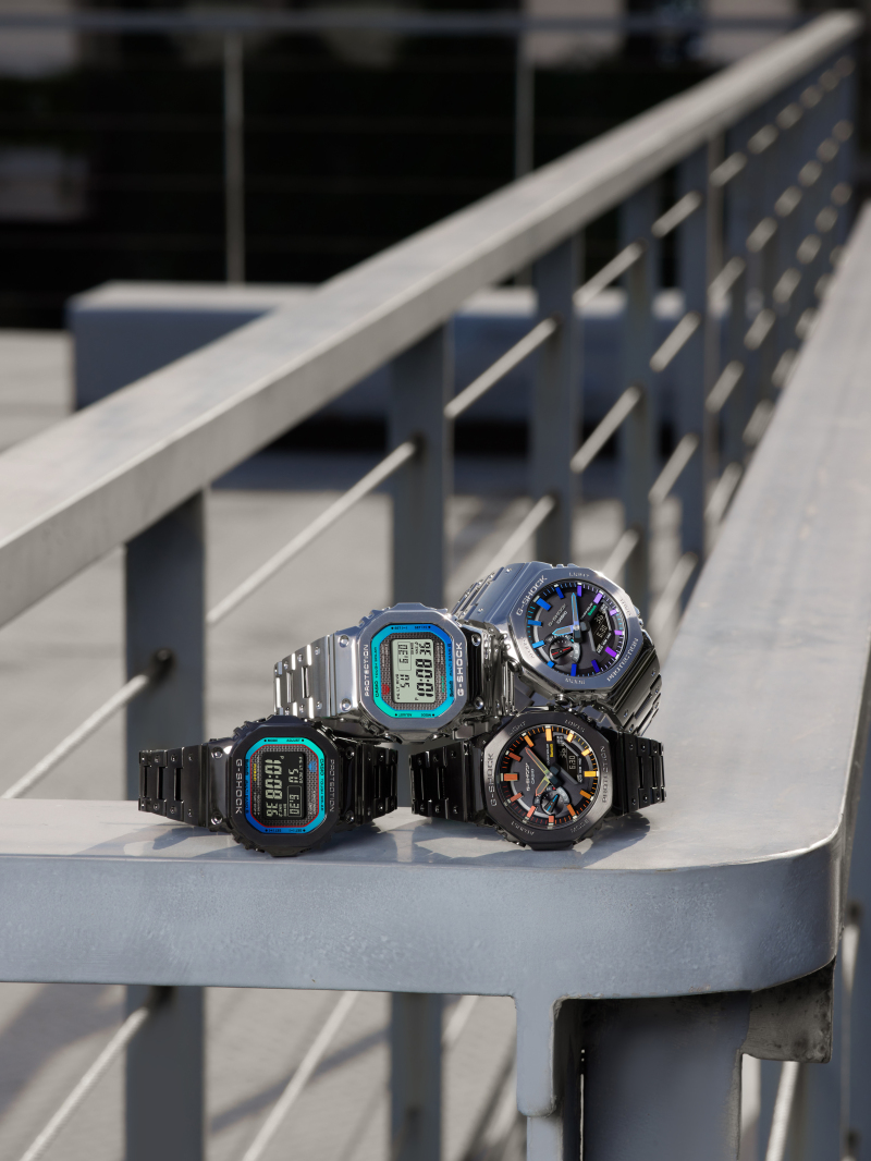 在G-SHOCK诞生的40年里,品牌打造了无数经典系列。每一款腕间力作的诞生,都见证着品牌坚韧不止的精神。历经时间磨砺,G-SHOCK坚韧的棱角不仅未被磨损掉一分一毫,而且还不断进化、持续创造新的坚韧传奇。此次,G-SHOCK在金属美学与先锋格调之间坚韧再进化,以以突破常规的渐变色为方块造型的B5000系列与八角造型的2100系列潮流焕新,呈现经典设计的多元色彩表达,最终以G-SHOCK「炫彩渐变」系列四款腕表唤醒高阶时尚嗅觉,展露硬核棱角态度。