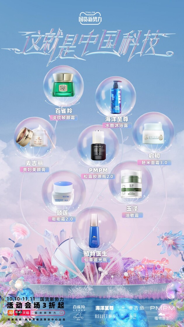 此次正值双十一在即,天猫再度联合主流媒体平台,携手百雀羚、启初、玉泽、PMPM、海洋至尊、植物医生、颐莲、麦吉丽八大国货品牌共同推出“国货新势力”主题活动,此次盛典又会给我们带来怎样的新惊喜?