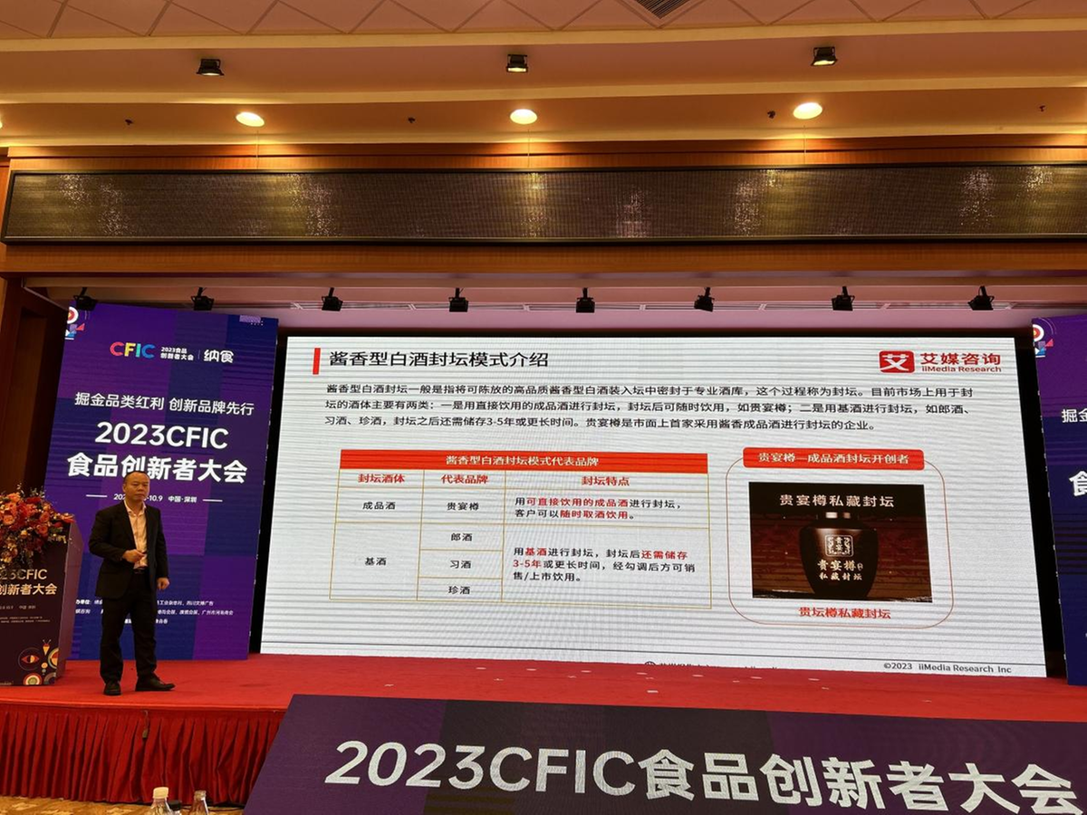 10月9日2023CFIC·食品创新者大会在中国深圳举行,艾媒咨询CEO兼首席分析师张毅受邀出席大会,并发布《2023年中国新锐企业家白酒消费洞察白皮书》,用数据洞察中国白酒行业发展现状与未来趋势。