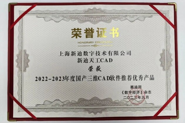 日前,工信部中国电子信息产业发展研究院直属单位赛迪网和工信部主管《数字经济》杂志社联合发布“2022-2023年度产业数字服务案例及创新成果”,上海新迪数字技术有限公司旗下产品新迪天工CAD荣获“2022-2023年度国产三维CAD软件推荐优秀产品”。