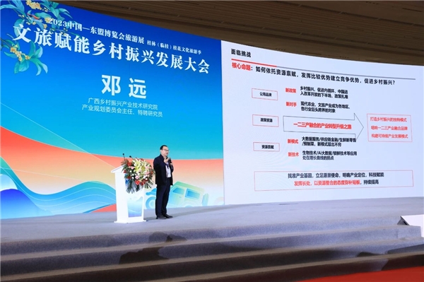 来自中国乡村振兴战略实施领导小组的特聘专家、浙江“千万工程”的智库顾问以及区内外知名专家汇聚一堂,以文旅赋能乡村振兴发展为主题,借助中国—东盟博览会旅游展的广阔平台,共同探讨文旅赋能乡村振兴的路径与方法,并分享浙江等地的成功经验与案例。会议旨在贯彻落实打造桂林旅游城市重要指示精神和助推乡村振兴发展的具体行动,更是一场难得的文旅赋能乡村振兴发展的学术探讨与成功案例分享的盛宴。