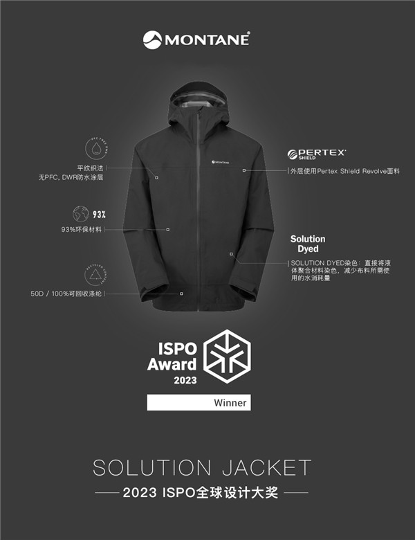 全球领先的户外品牌 Montane 宣布,将于 SS24 发布的 Solution Jacket 荣膺 ISPO 全球设计大奖。这一殊荣凸显了 Montane 在产品线中对卓越性能的追求和可持续责任的承诺。