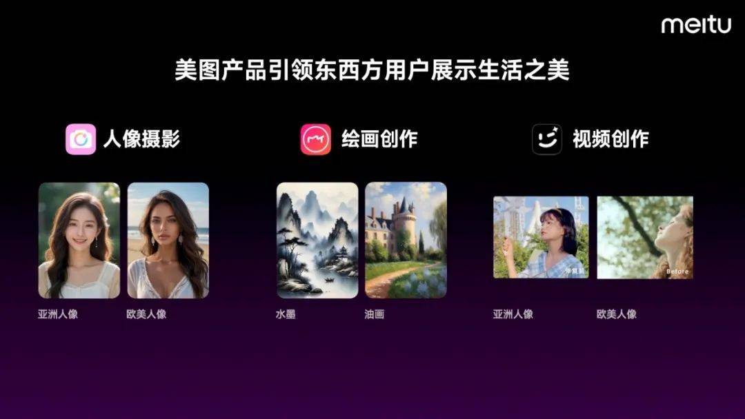陈剑毅介绍说,美图产品的全球化经验有四。一是尊重共性与个性,如在修图偏好方面,亚洲各国用户偏好美颜,欧美用户趋向自然原生,把握好用户的共性和个性化需求创新,对产品至关重要;二重视自传播,美图旗下产品推出的很多AI功能玩法,天然自带传播属性,是切入新市场重要抓手,能短时间大幅带动增长;三是重视短视频,作为全球年轻人关注社媒的主流形式,以短视频为核心载体,可快速提升品牌全球影响力;四是把握本地化节庆机遇,节庆营销之于出海产品极为重要,除了全球大节,各国本地节庆也能带动增长。