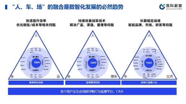 面对汽车行业的数智化,程杰博士认为,'人、车、场'的融合是汽车行业数智化发展的必然趋势,特别是车联网高速发展今天,全方位、全时空地洞悉车主人群在汽车、地产、旅游、金融、零售、医美、商业等不同行业领域的客户行为及体验洞察,将为各行业带来巨大的商业价值。