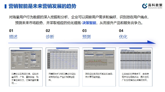 营销智能是数智化发展的趋势,通过深入挖掘和分析海量的用户行为数据,企业能够洞察用户需求和偏好,识别潜在用户痛点,并利用数智化平台优化决策方式和预测市场趋势,并基于数据结果采取相应的优化措施,即决策智能。这一过程有助于提升产品和服务的竞争力,使企业更好地适应市场变化,提供满足客户需求的创新解决方案。