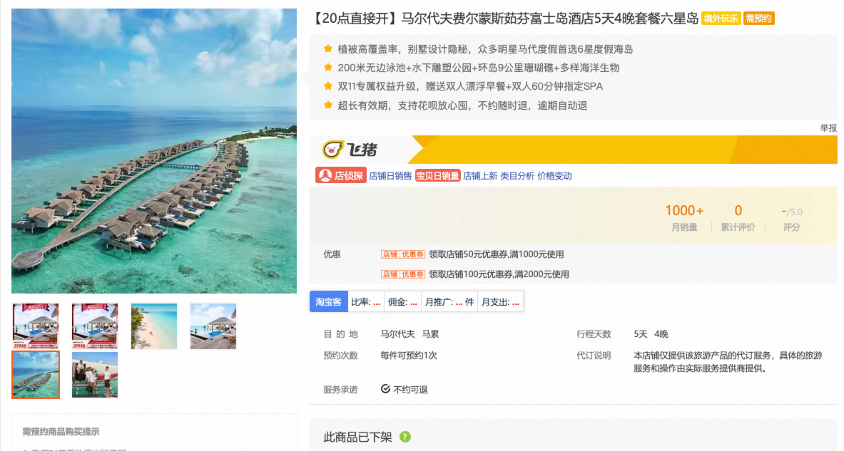 持续升温的旅游热带动航旅产品热销。更多人在双十一提前囤货,规划半年的出行。马尔代夫成为囤货的最佳目的地,一款5天4晚全包度假套餐在10月31日当晚3小时成交破亿。与此同时,即将到来的滑雪旺季也带动长白山万达滑雪度假区被疯抢囤货,大量雪友直接预约确认出行。万豪国际酒店集团依旧大受欢迎,通兑套餐累计近亿,表现亮眼。还有今年的超级单品“南极邮轮游”,吸引了大量冒险爱好者,库存几近售罄。