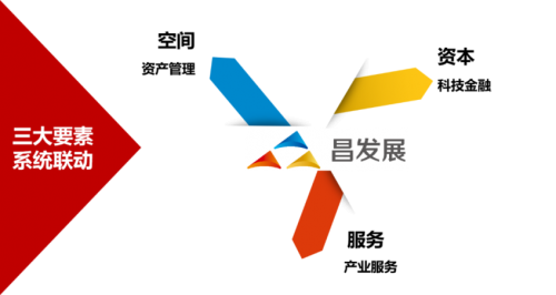 昌发展的企业定位,是聚焦于昌平产业功能区的“新型产业生态投资运营平台”,其商业模式为构建产业园区一站式生态系统,下辖资产管理、科技金融、产业服务三大业务体系,围绕企业发展核心要素为其提供集定制化产业空间、产业投融资及深度产业服务于一体的一站式整体解决方案。