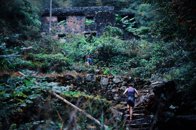 越野跑赛段则是此次比赛的又一大亮点,踏上双龙古道,奔过先人走出的一条条山间小道,铁人们仿佛化身侠客在群山丛林中竞速追径。