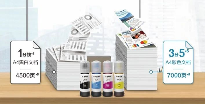 首先来看升级过后的灌墨操作。4色A3+墨仓式新品L11058机体采用智能卡口设计,能够帮助用户在灌墨操作过程中免脏免错,不占用工作时间,轻松续航打印操作。除了省时,省钱对于图文店和图文设计公司这类小型企业来说也是个大问题。针对低成本实现高质量的需求,此次L11058配置全新升级的004墨水,性价比超高。划重点! A4黑白文本4500*3页,打印成本低至0.01元;A4彩色文本7000*3页,打印成本低至0.035元。