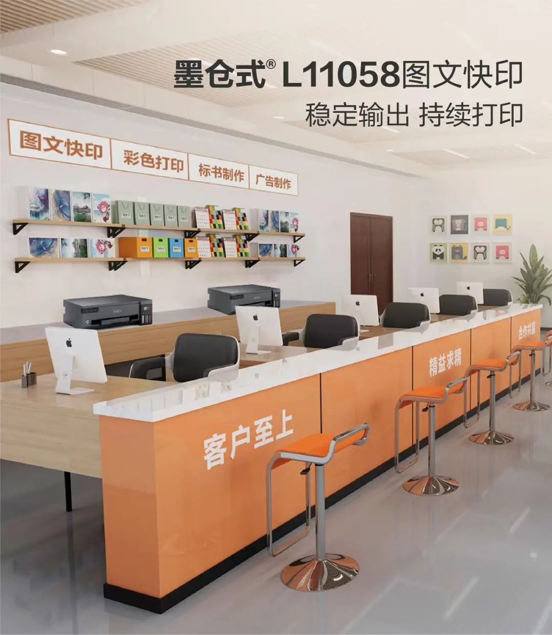 灵活轻便的桌面打印机是图文店与各类图文设计公司的首选,更是其当之无愧的办公效率助推器。若打印机设备出现差池,本就繁忙的工作人员就需要费力往返维修网点或等待上门检修,不免耽误大量时间和工作进度。考虑到此类用户“分秒必争”的工作效率追求,爱普生全新4色A3+墨仓式新品L11058创新维护操作,性能出众、经久耐用,时时刻刻为用户的稳定使用保驾护航。