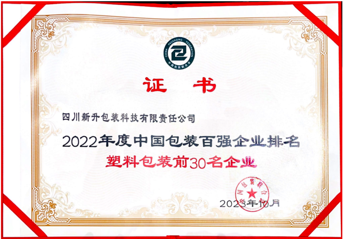 当日,在中国包装联合会公布的2022年度中国包装百强企业综合排名中,新升科技位列第37名、恒升包装位列第74位。