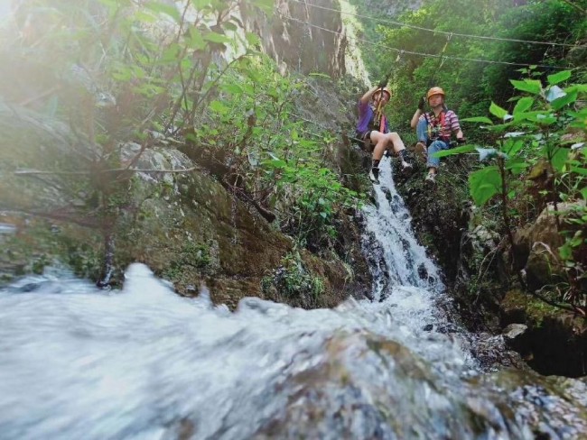 此外,拥有“一夫当关,万夫莫开”之势的石门关还有丰富的自然岩壁资源。景区内已经建设完成了总长约2160米的飞拉达,这是目前国内最长的飞拉达线路,也是国内唯一一条飞拉达设计与瀑布景观结合的瀑布飞拉达。桁架在石门关瀑布上的飞拉达,不仅可以让游客从独特的视角领略石门关壮丽的风景和古老的苍山地质,还能让游人体会到在岩壁上驰骋“会当凌绝顶”的快感。此外,景区内由清凉山和翠屏山巨大崖壁形成的深邃峡谷更是进行自然岩壁攀登的理想之所,落差超550米的崖壁不仅是自然奇观,其天然的凹凸缝隙与角度变化丰富非常适宜展开攀爬。