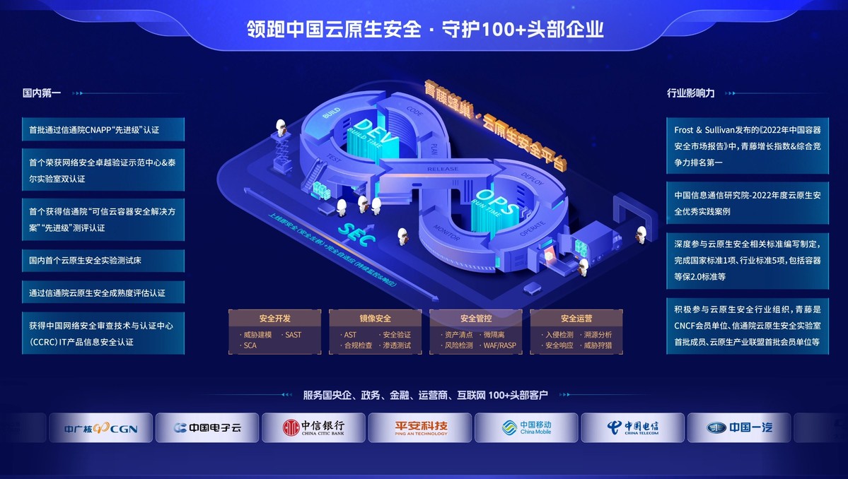 截至目前,青藤已为来自政府、金融、电信、能源、交通、医疗、制造、互联网等众多行业客户,提供稳定、高效的云原生安全防护,通过大规模客户服务积累和创新性技术打磨,全方位展现了青藤云原生安全能力的领先性。