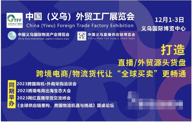 中国外贸“朋友圈”不断扩大,市场多元化进一步拓展。为积极响应国家发展趋势,促进内外贸融合发展,推动内外循环双向互促、供给需求协同发力,由中国百货商业协会、中国电子商会共同主办的2023中国(义乌)外贸工厂展览会暨跨境电商采购交易会(简称:义乌外贸工厂展)将于12月1-3日在义乌国际博览中心举办!本届博览会吸引了726家企业,共设国际标准展位1213个,展览面积3万平方米,这场全球贸易的战场上,通过本届博览会“汇聚全球优品 发展新型外贸”,726家企业共同点燃冬日奋进的激情。