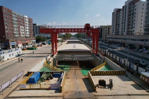 据了解,青岛地铁9号线城子站由中铁(上海)投资集团总承包,中铁三局集团施工建设。城子站周边环境复杂,两侧居民楼林立,楼下网点房众多。地铁施工过程中的扬尘和噪音扰民问题成为了影响城市环境和周边居民生活质量的重要因素。为践行建设世界一流地铁“绿色工地、和谐工地”理念,最大限度减少地铁施工对周边环境影响。施工现场创新“防尘四步法”即通过设置围挡喷淋系统、基坑周边设置360°喷淋雾柱、基坑上方设置可移动电动伸缩式天幕、基坑内裸土覆盖绿网,进一步降低了扬尘、噪声的产生,实现了绿色、和谐建造。