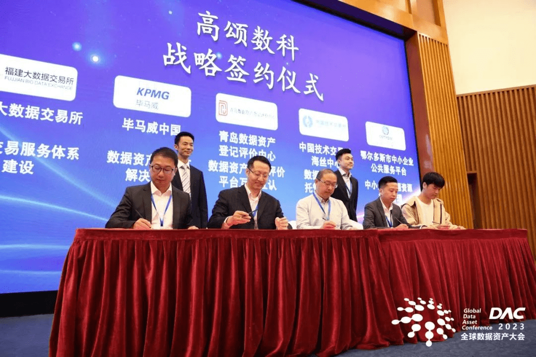 作为本次大会的主办方之一,高颂数科(厦门)智能技术有限公司与多家合作伙伴共同签订了战略合作协议,包括与福建大数据交易所、毕马威中国、青岛数据资产登记评价中心、中国技术交易所海丝中心、鄂尔多斯市中小企业公共服务平台、绵阳科技城科服公司、武汉东湖大数据、安胜网络、云基华海、绵阳科技城新投公司,将以数据资产化为核心议题,深化双方在数据资产管理、数据技术应用和市场推广等方面的合作,共同推进数据资产化的发展进程。