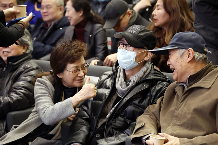 中央美术学院教授、附中1957届首届毕业生金鸿钧在视频致辞中表示,作为首届附中毕业生,仅代表我们这些老一辈的同学们,对我们开校的元勋——以丁井文校长为首的这些老师们、教职员工们,表示无限的尊敬、敬意和怀念。同时,祝我们所有的老校友们在有生之年还贡献出我们的余热,把我们附中的光荣传统继承下去,希望我们小学弟、学妹们,继续继承和发扬附中的优良传统,好好地学习、不骄不躁,努力地争取在新时代闯出新的高峰。