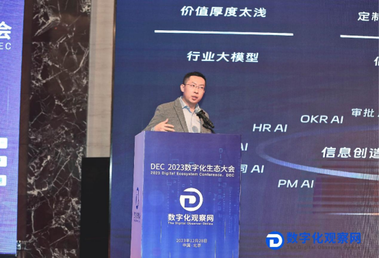 12月28日,数字化观察网联合中国云体系联盟、中国企业数字化创新发展联盟等单位在北京成功举办“DEC2023数字化生态大会”。本届大会邀请政府领导、院士、专家学者和企业领袖,围绕“数字生态 赋能转型”主题,通过对国家政策、行业趋势的解读以及企业成功实践的分享,交流数字化转型技术与解决方案,探索新时期数字经济的决胜之道,共话“智改数转网联”的新思路、新方法,助力推进新型工业化。