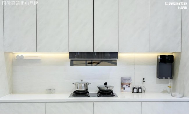 另外,随着审美需求日趋多元化,产品有颜值有质量的时代已然到来。卡萨帝烟机作为决定厨房美观度的重要因素,在率先实现风量与静音平衡后,又开辟了功能与美学平衡的新赛道,推出行业首个全嵌烟机,将烟机厚度降至325mm,实现全隐嵌入。同时,采用定轴铰链大转角翻板技术,以110°最大开合角,扩大拢烟范围,保证油烟0逃逸,厨房更洁净,同时解决了烟机凸出不美观的设计难题。