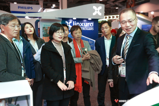 展会现场公牛全新充电桩超高颜值的外观获得了消费者的一致称赞,多家国际知名厂商也纷纷表示非常看好中国企业新能源业务及产品实力。中国驻旧金山总领馆副总领事邹永红、中国驻旧金山总领馆商务参赞邬沛民及中国机电商会副会长刘春也来到公牛展台前参观,并与公牛集团副总裁兼新能源事业部总经理谢维伟热切交流,肯定了来自中国的科技力量。