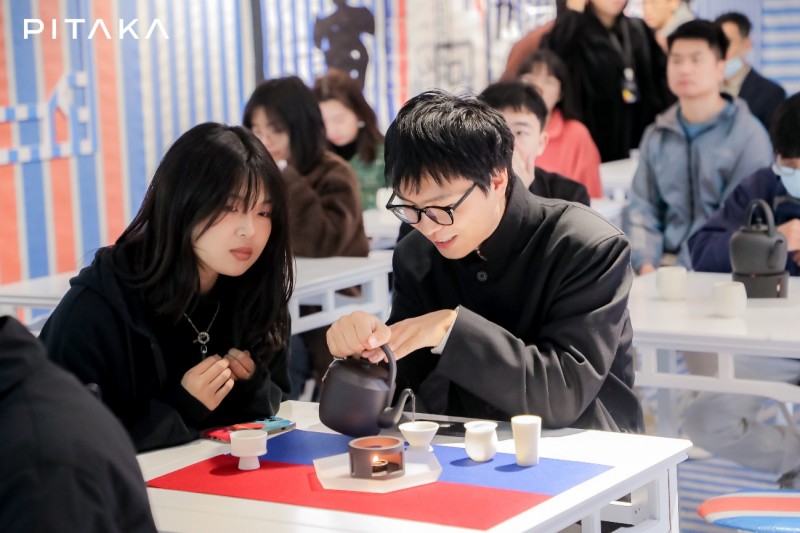 PITAKA于深圳华侨城创意园北区复刻了18年前令“红白蓝”蜚声中外的艺术空间《红白蓝茶馆》,展览期间,展馆内举办了由内容合作伙伴tea'stone支持的又一山人与青年设计师的对谈茶话会、织织袋工作坊、华侨城创意园teawalk打卡等活动,带给造访者更多维度的体验。