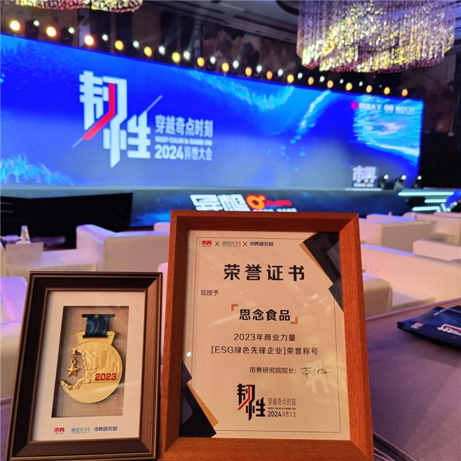 1月10日,市界联合《财经天下》周刊、市界研究院举办的“韧性丨穿越奇点时刻-2024 异想大会”在北京召开,思念食品凭借前瞻的ESG理念,以及在商业可持续发展和社会责任方面的贡献,荣获2023商业力量-ESG绿色先锋企业荣誉称号。