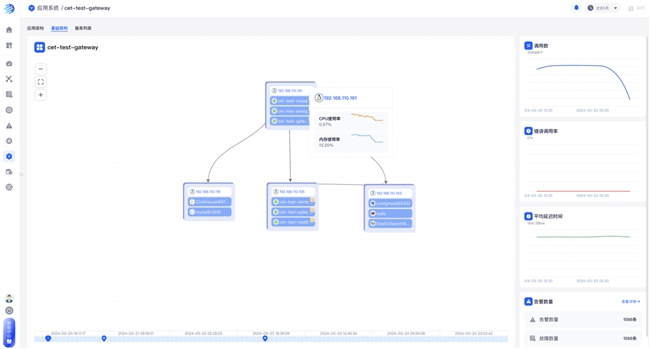 应用系统以卓越的视觉呈现,清晰展示系统与服务间的精妙拓扑关系。它支持服务视角的深入分析,精准展现关键指标与调用链路的内在逻辑。同时还具备基础架构视角,与资源信息联动展示服务器利用率,另外还具备健康与告警视角,可聚焦关键问题与基础设施,帮助用户快速识别潜在的瓶颈和故障点,助力快速定位问题。