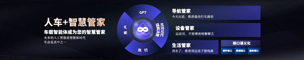 第三个关键词是多元智能。通过空间定制、记忆互通和人车+智慧管家三项核心技术,借助GPT大模型的能力,汽车座舱正逐步转型为一个能够理解并满足用户个性化需求的智能空间。空间定制技术通过分析用户的音乐喜好和个人画像,智能调整车机的音响效果和车内灯光,甚至生成匹配的屏幕画面,从而创造出符合用户心情和风格的音乐空间或工作空间;记忆互通技术则在时间维度上捕捉并学习用户的习惯,例如,如果系统记住了用户每周三去球馆的活动,它会在适当的时间提醒用户准备装备,并自动提供导航服务;人车+智慧管家技术则是将GPT大模型的学习能力与座舱生态系统相结合,使操作系统能够根据用户的需求提供行程规划和生活安排,使汽车成为贴心的智能伙伴。