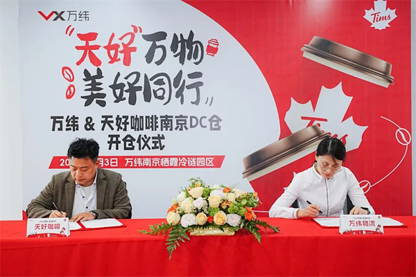 2024年4月3日,万纬物流与天好咖啡在万纬南京栖霞冷链园区正式举办南京仓开仓仪式,南京仓为双方合作的首个仓库,万纬物流将为天好咖啡产品提供仓储和运输配送服务。