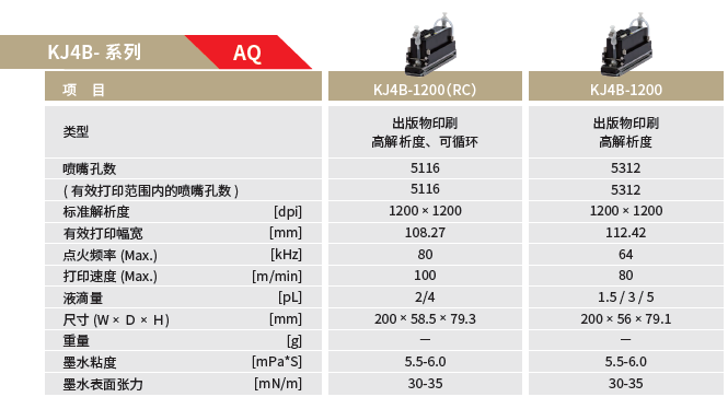 京瓷喷墨打印头KJ4B(水性)系列规格