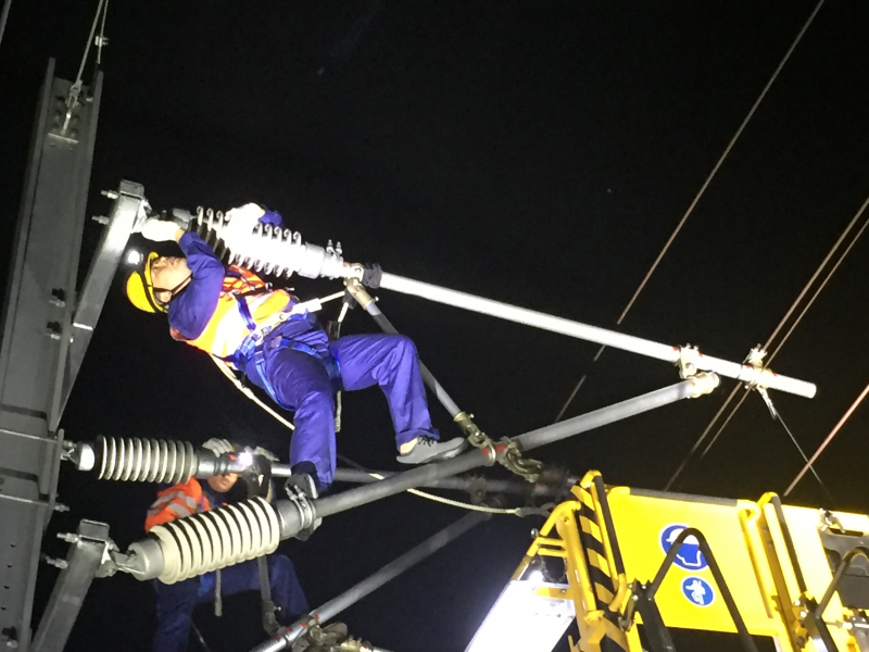 京港高铁(江西段)是中铁电化运管公司南昌维管处赣州维管段维管速度最快,等级最高的高速铁路,也是该段日常重点维护管理的线路之一。3月18日凌晨,笔者随赣州维管段接触网工一睹他们的作业过程。