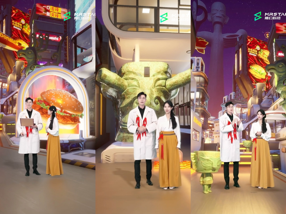4月11-13日,麦当劳和三星堆,两个不同赛道的超大IP进行为期三天的虚拟线上直播。随幻科技为此次联名大直播提供了全流程的数字内容订制与XR直播服务,利用AI与3D数字技术为品牌联名直播打造出了一场内容创意与科技质感都颇具亮点的直播案例。