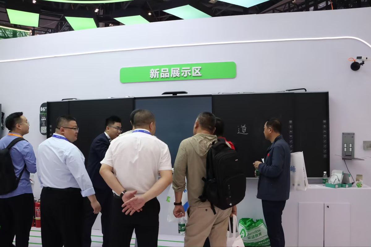 搭配移动记忆副板形态的智慧黑板Q系列,可实现延时教学的特色功能,在本次展会上受到众多参展者的青睐。而在其他系列的教学设备,视听方面上也都进行全新的升级与创新,为新型教育模式带来更多可能。