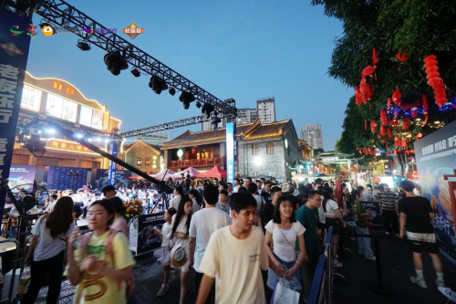 现场充满民族特色的展示区、互动区,以及精彩的民俗表演同样备受欢迎。展示区汇聚广西特色美食、文创产品、非遗文化等摊位,吸引着路过的行人驻足观赏。互动区设置了抛绣球、跳竹竿等具有民族特色的游戏,引来游客们积极参与互动。比赛过程中,铜鼓舞、唱山歌等一系列广西民族表演秀轮番上演,为观众带来了一场视觉与文化的盛宴。