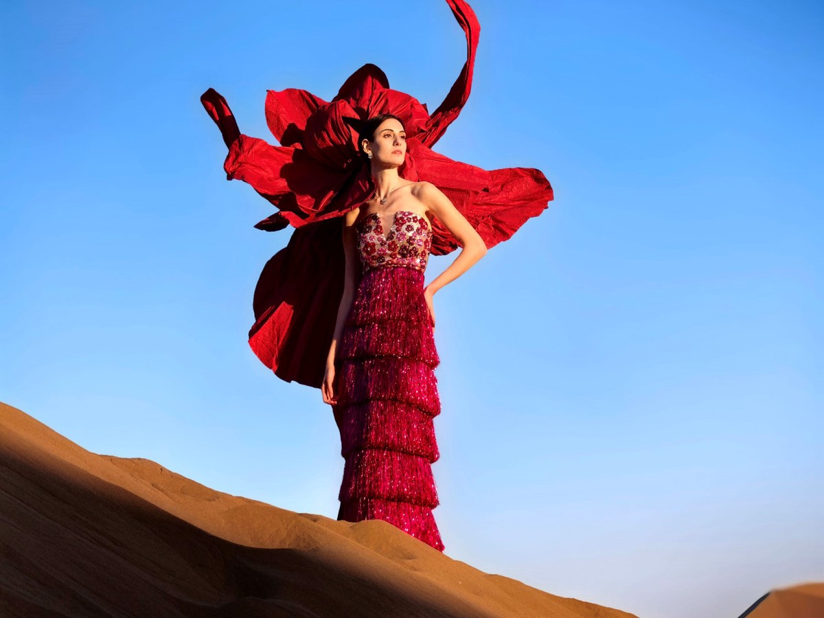 沙龙现场,摄影师小北以华为Pura70系列、华为Pocket系列样张摄影师的身份分享了自身的拍摄经验。为了呈现华为Pura70搭载的XMAGE色彩风格,小北创意性地在新疆沙漠中“种植”了一朵巨型红色纸花,象征着生命力与色彩的完美融合。在这片纯净的背景中,火焰般的红色纸花、海蓝的天空与金色的沙漠形成了鲜明的对比。通过纯净的背景、鲜艳的对比、精致的构图相互搭配,小北利用华为Pura70的XMAGE原色风格和AI摄影大师的辅助功能,捕捉了这一震撼的场景。这张照片不仅完美展现了色彩的丰富层次,更因其创意和技巧,被选为华为Pura70的官方样张。