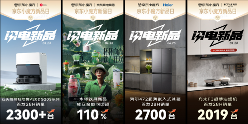 目前,京东已形成一套独有的闪电新品营销方法论,通过180天的营销全周期扶持,帮助商家新品从孵化走向成熟,并成功带动京东行业新品销售大幅增长近58%。仅今年4月,京东家电家居就联合美的、海尔、华为、小米、九阳、全友等品牌首发的20余款新品,款款卖爆业绩惊人,10款创下历史纪录,9款更是一跃全网领先,成为行业瞩目的焦点。