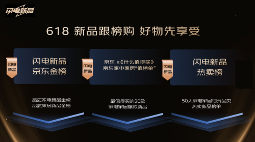 此外,京东家电家居还将依托今年初推出的”闪电新品“IP,为商家持续不断地提供流量,搜索扶持,运营,营销等方面的支持,提升品牌商家打新的确定性,实现618期间的生意爆发。