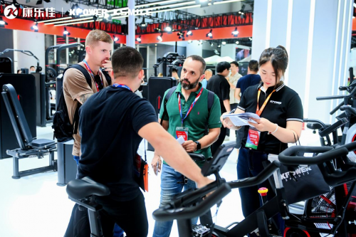 展会期间,参观者络绎不绝,并驻足切身体验,深入了解康乐佳产品性能。现场工作人员们热情洋溢,通过示范讲解,向参观者详细介绍产品特点和优势,让每一位来访者都能深刻感受到康乐佳现代智慧健身的精工匠心。康乐佳的展位(5A003)不仅吸引了大量客商的关注,更赢得了广泛赞誉。