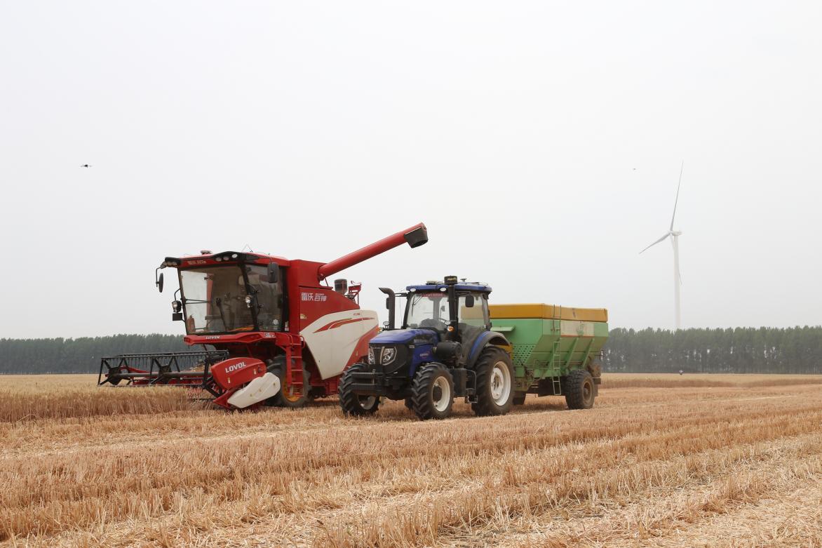 在粮食增产无人化农场里,潍柴雷沃无人驾驶系列智能农机正在田间作业。雷沃谷神GM100无人小麦机与运粮车双机协同作业,配备着雷沃圆捆机的雷沃拖拉机进行无人驾驶打捆作业,搭载雷沃电驱驱动高速精量播种机气、大豆玉米复合播种机和小麦复式条播机的潍柴雷沃大马力智能拖拉机实现无人播种……一台台插上科技“翅膀”的智能农机,呈现出一幅智慧“无人农场”的未来画面,让传统的三夏生产“新”力十足。