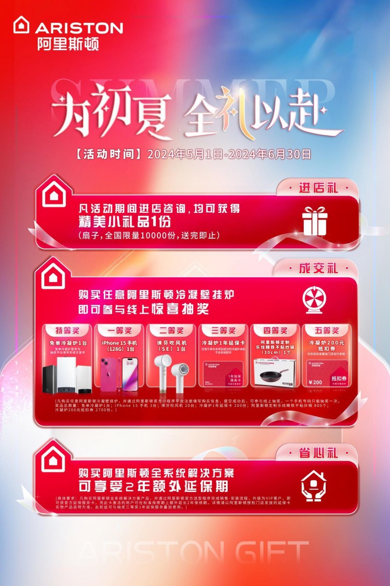 阿里斯顿夏日促销热情开启,为消费者带来高品质采暖产品和贴心服务的同时,还有属于这个夏天的别样惊喜。