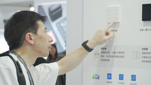 未莱KNX系列面板提供PC或金属两种材质,采用纯平外观设计,高对比度屏幕,精致双色字显,有玉兰白、深砂银、拉丝黑三种外观颜色选择,百搭不同的装修风格。可灵活设置带接近感应功能,手势或靠近时唤醒屏幕,用户体验更加自然流畅。