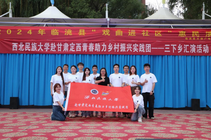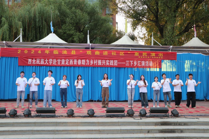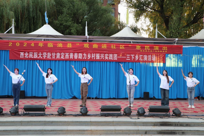 7月17日,随着夏日的热浪席卷而来,西北民族大学的三下乡实践团也带着满满的热情,赴甘肃省定西市临洮县展开了一场主题为“红歌唱响,青春助力乡村振兴”的惠民演出活动。此次演出由音乐学院声乐表演专业的研究生们主演,他们用深情的歌声与精湛的表演来传递着对祖国的深情和对幸福生活的致敬。
