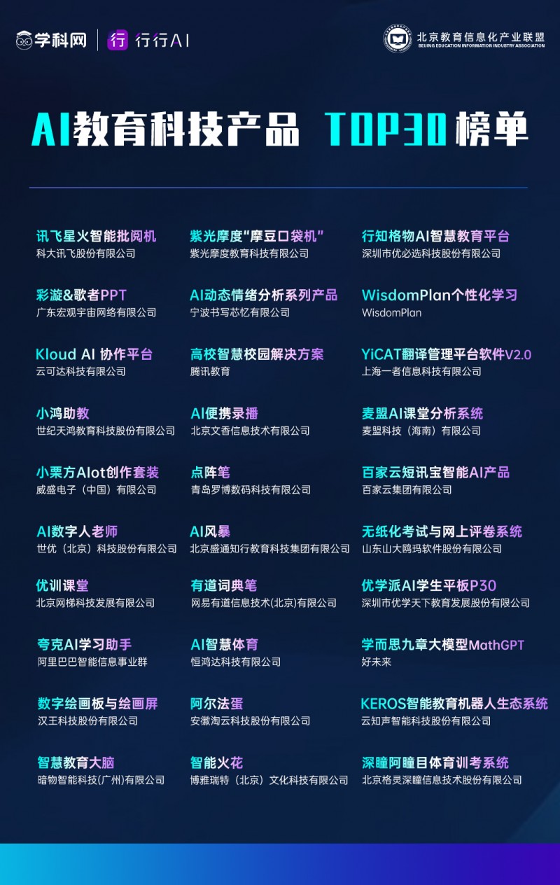 AI教育科技产品TOP30榜单发布