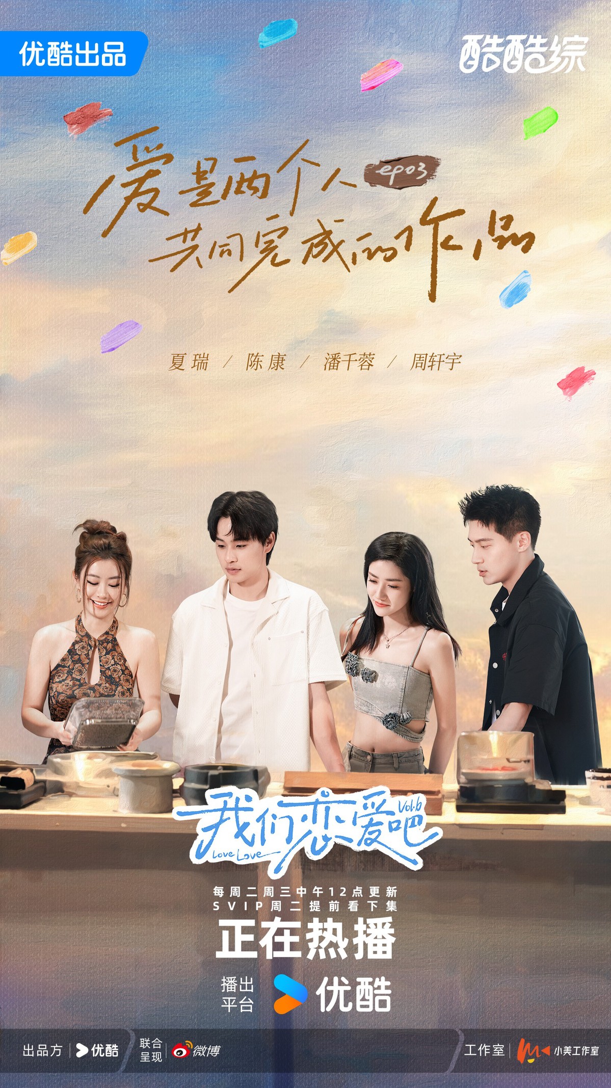 由三九胃泰牌养胃舒冠名、优酷自制工作室小美工作室制作的观察类情感社交真人秀《我们恋爱吧》第六季正在热播,节目于每周二周三中午12点更新上下集,SVIP周二提前看下集。第二期上线后引发全网热议讨论,丘比特桂廷禹划分约会小组,游艇组出海遭遇海风解锁“海盗船”体验,渔船组突临暴雨再现《公主小妹》名场面,练爱小组一组比一组抓马,观察室爆笑“看戏”、甜蜜嗑糖两不误,独到练爱见解引人深思与共鸣。