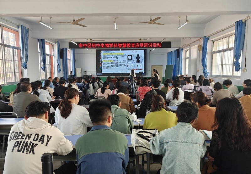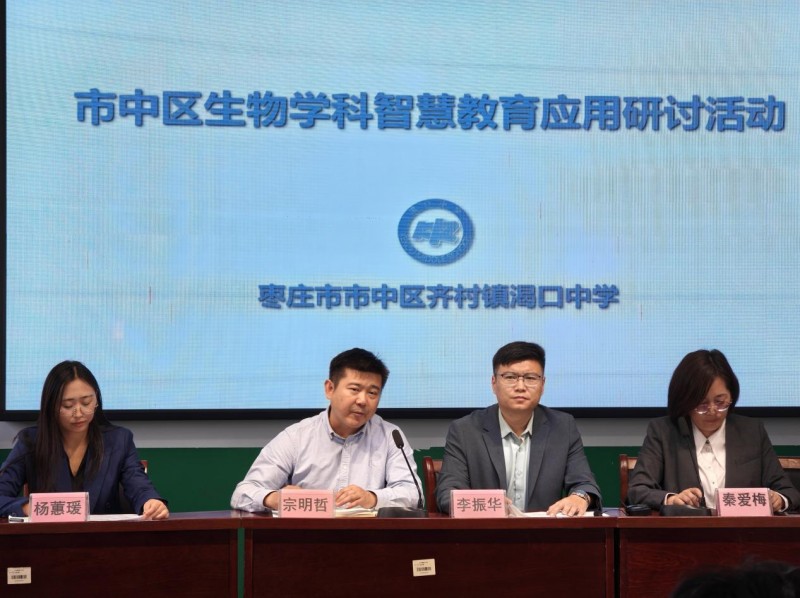 为深入推进全区新课堂达标活动,加强智慧教育的深度开发与应用,促进教学经验的交流与分享,提升教师的信息化教学能力,枣庄市市中区教学研究中心启动“智慧教育应用系列研讨课”活动。10 月 12 日,活动首站暨全区初中生物学科智慧教育应用研讨活动在市中区齐村镇渴口中学成功举办。市中区教学研究中心相关领导、枣庄市初中生物兼职教研员以及全区生物学科教师共计50多人参加活动。