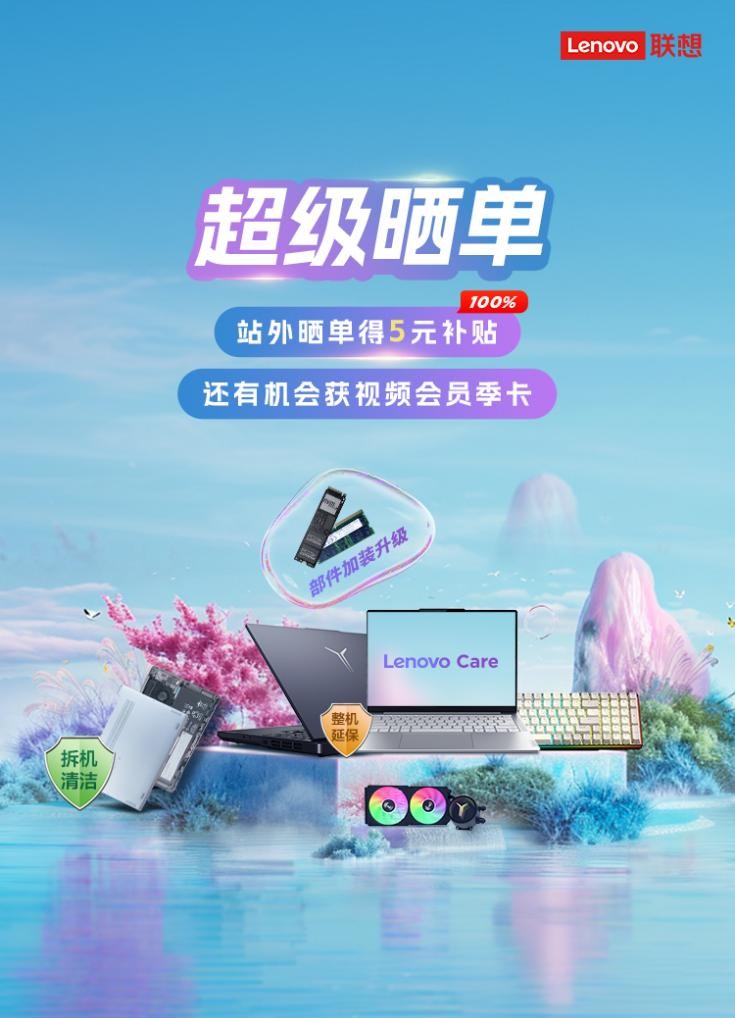 购买了联想指定产品后,这次千万别忘了在社交媒体上分享你的使用体验,并截图给平台客服!简单的晒单操作,不仅能获得5元补贴,还有机会赢取爱奇艺会员季卡!只需几分钟,你的分享就能带来双倍的快乐与福利!参与起来,让你的分享更有价值,福利多多,惊喜不断!