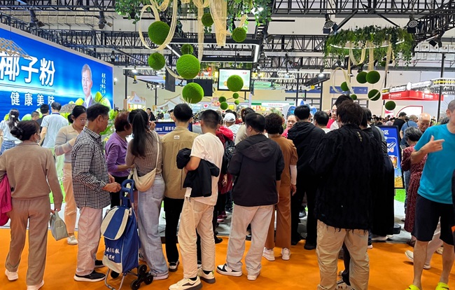 南国食品此次展厅面积达360平米,新颖的设计风格融合清新原生态元素,让人眼前一亮,为消费者营造了别具一格的观展体验。展位现场人潮涌动,热闹非凡,充分彰显了南国食品在本土品牌中的强大影响力与号召力。